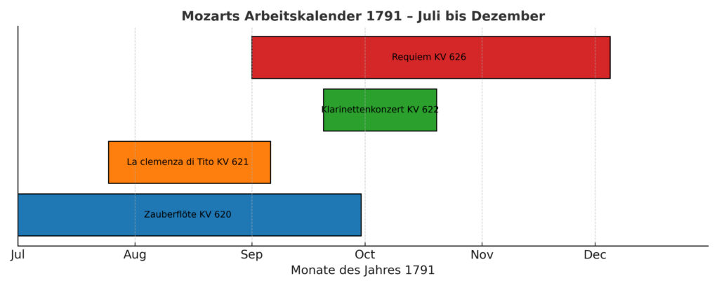 Mozarts Leben war arbeitsreich. Die Schaffensbilanz seiner letzten Lebensmonate waren vermutlich ertrags- und arbeitsreicher als ein Lebensjahrzehnt anderer Menschen.